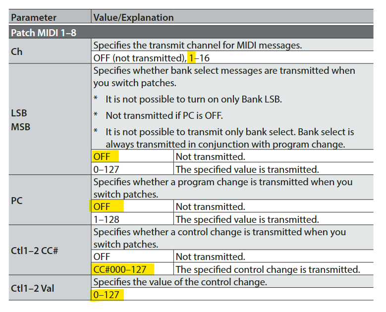 yup. here are the settings for this MIDI message on this patch; i confess to not knowing what some of them even are, iâm pretty new to MIDI, but again, the same settings worked for iridium, with just the changes in channel and CC#/value: