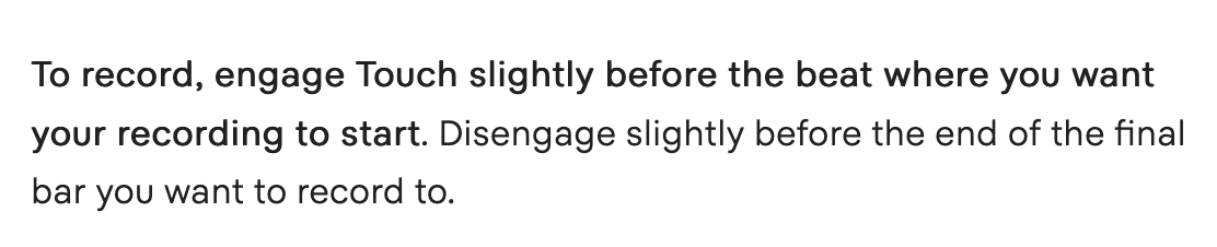 Can we add the option to tell Ribbons to start recording upon receiving the MIDI Start/Stop command from an external clock/MTC source? Like the “Listen to MIDI Start-Stop” in Ghosts (CC#52), where it will start the drum sequence, if this touch mode is “armed” and I hit start on my Rolan J6. Something similar for Ribbons would be utterly useful.