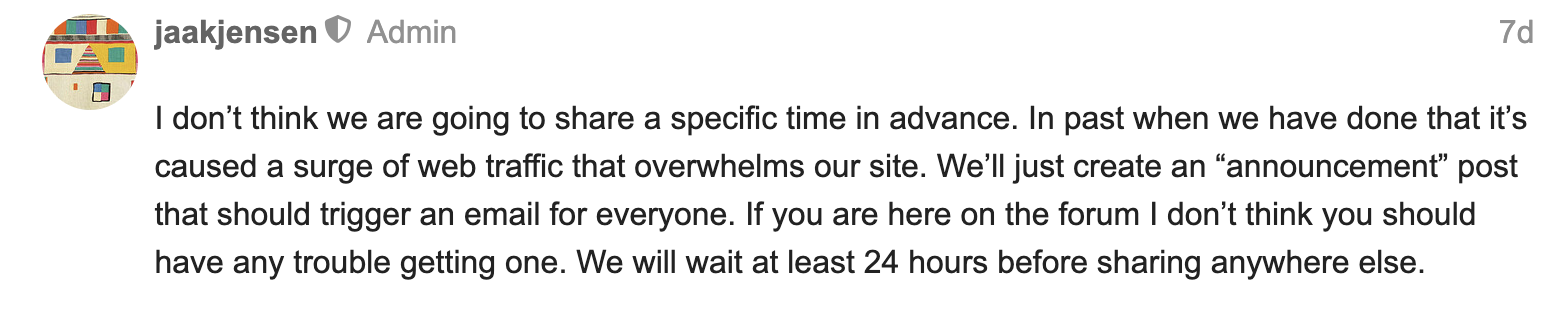 I missed the February batch but I was also moving houses so wasn’t going to be able to get one anyway. Just posting my interest on getting Sparks. Any info on the next batch?